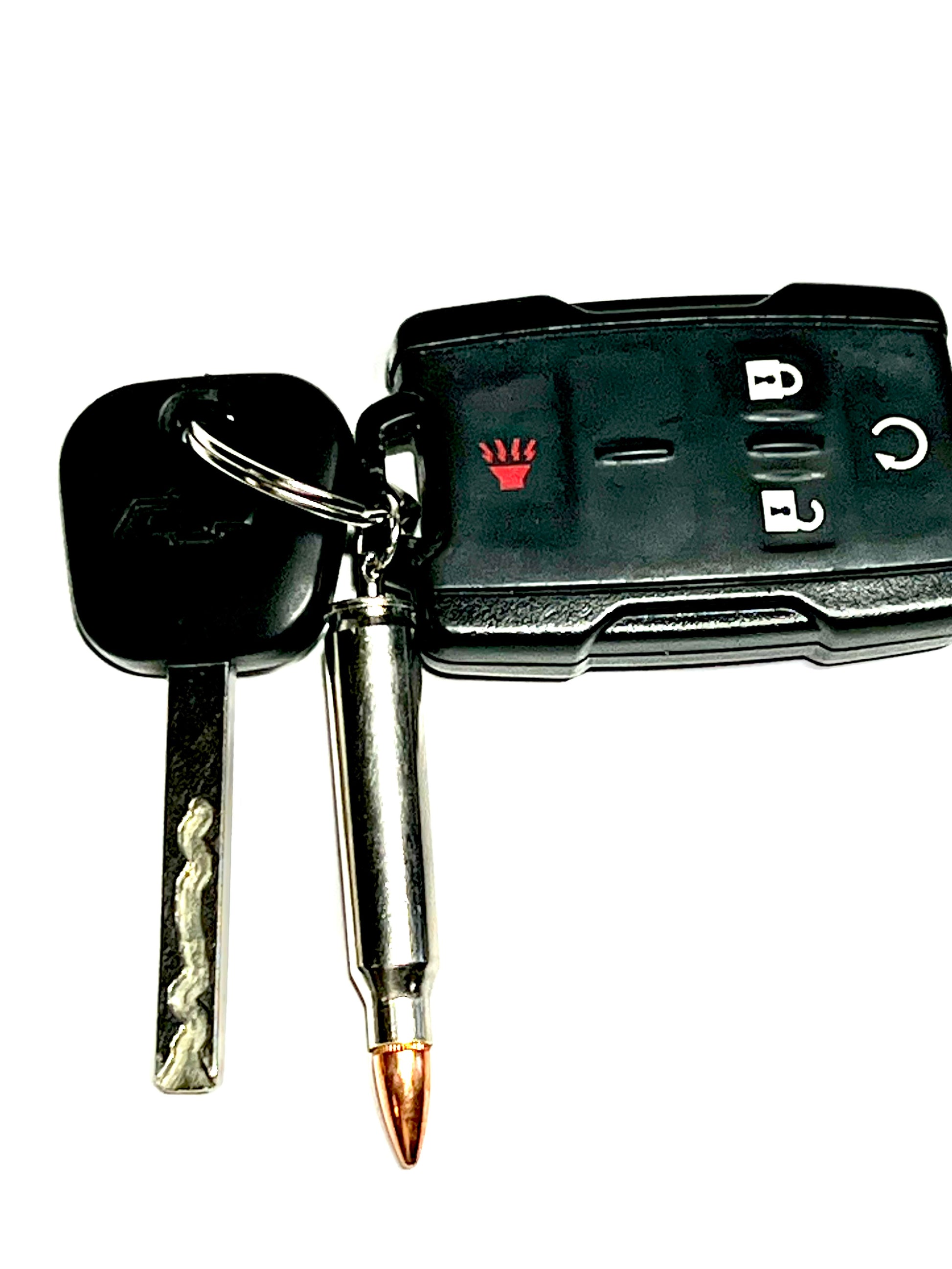 223/5.56 FMJ Nickel Plated keychains are stylish for the outdoor enthusiast to a women’s keys. These durable keychains are eye catching and a great conversation piece.