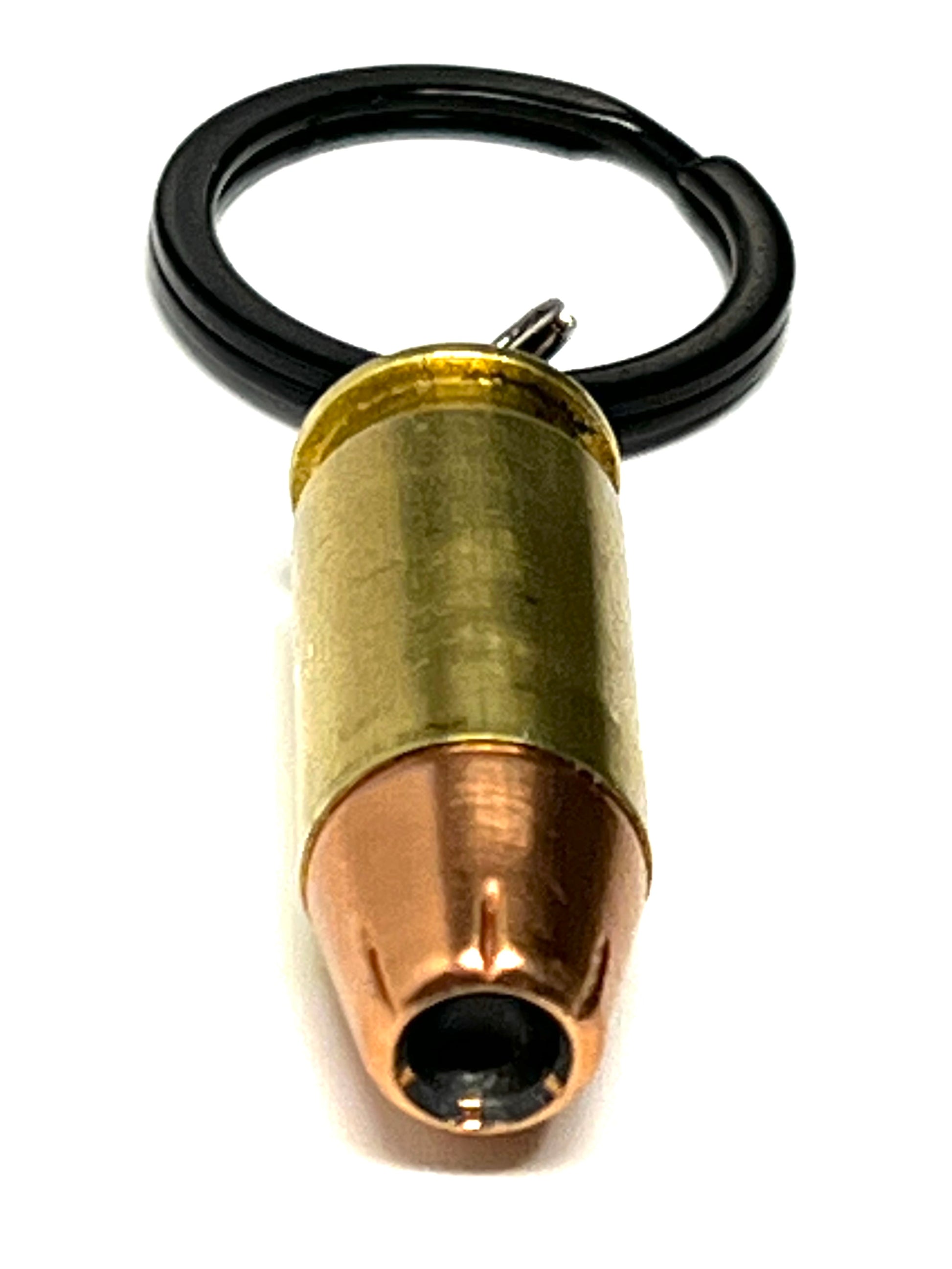 Package includes: 1PCS. 45 ACP hollow point keychain with your choice of black or silver flat key ring. Clear coat sprayed for a long lasting shine.